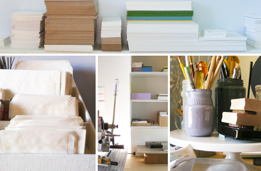 weekends in my office are my favorite. probably because there is no pressure of having to get orders ready to mail by 5:00. or maybe because i don’t really answer email or send proofs, but work on projects that i don’t get to during the week. usually i don’t even sit at my desk, i use my laptop on my worktable in the other room – far away from printers and databases.
