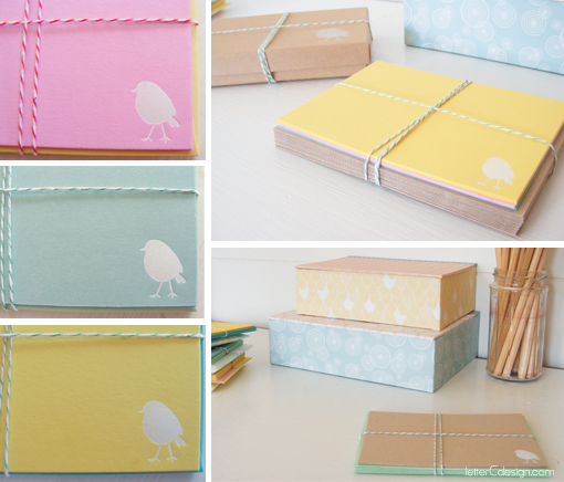 These cards are available in 3 spring colors – yellow, teal and pink. You can get them individually or if you can’t decide you can get a box set of all three. If you like a more neutral color you can get them in kraft with mint envelopes.